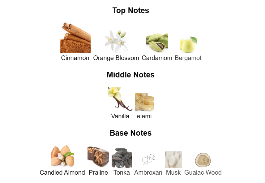 Top Notes: 🌶 Cinnamon, 🍋 Bergamot, 🌸 Orange Blossom, 🌿 Cardamom