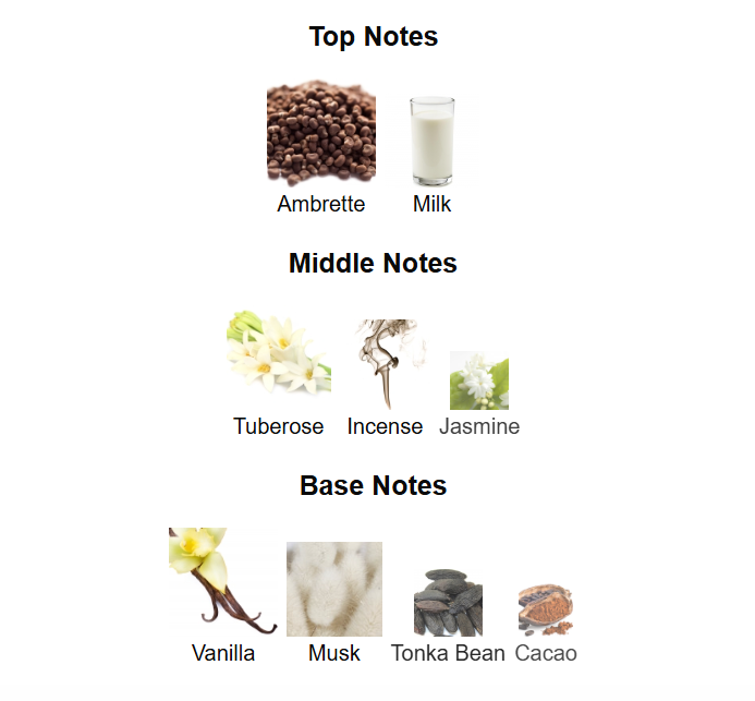 Top Notes: 🥛 Milk, 🌸 Ambrette (Musk Mallow)