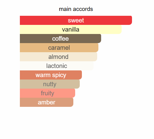 The fragrance begins with a rich and authentic opener of coffee, sweet almond, and milk, evoking the smooth aroma of a freshly brewed caffe latte. The heart deepens into a decadent medley of amber, vanilla, and an ice-cream accord, adding luxurious creaminess and warmth. The base lingers with irresistible caramel, vanilla, and almond cream, leaving a comforting, gourmand trail that stays close and inviting.